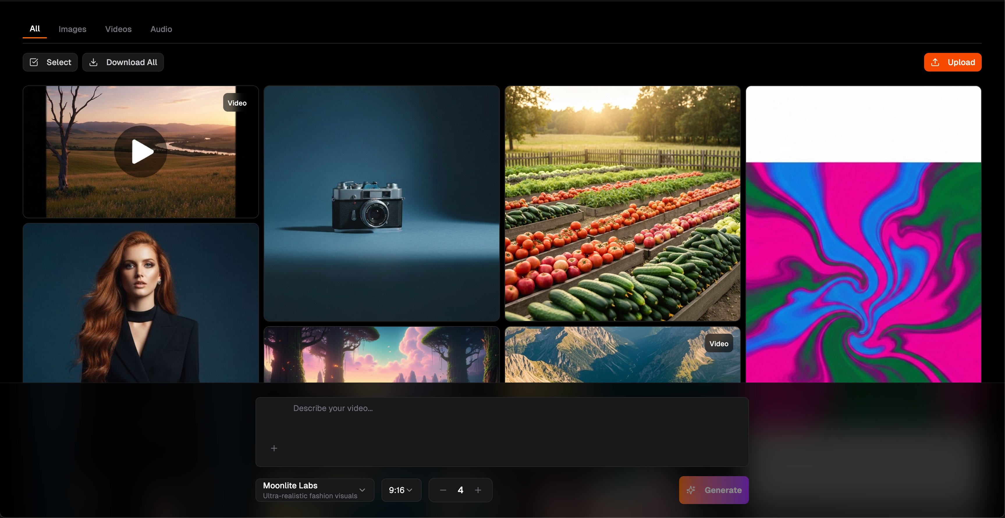 Generate stunning videos from text prompts using our AI-powered media gallery and chat interface